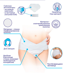 Съёмный жёсткий аппликатор в области живота и в ластовице.