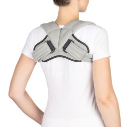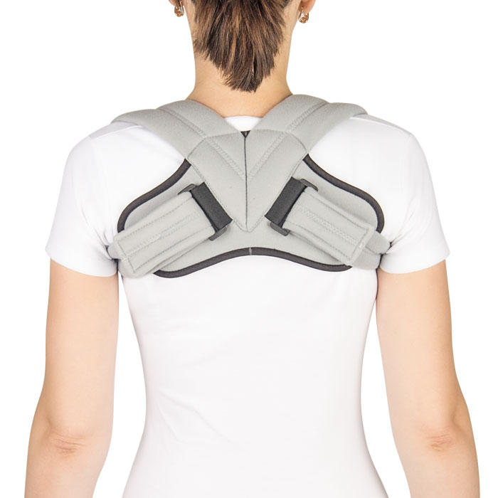 Расположите панель с пряжками между лопатками. Оберните ремни вокруг плеч, проденьте через пряжки и зафиксируйте в положении, обеспечивающем разведение плеч. Степень реклинации грудного отдела позвоночника и фиксации ключично-акромиального сочленения определяется врачом. Режим и сроки ношения определяются врачом.
